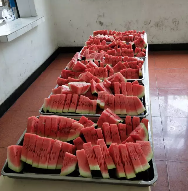 每天為一線員工熬制綠豆湯,供應(yīng)冰鎮(zhèn)西瓜,大家吃在嘴里,甜在心里......